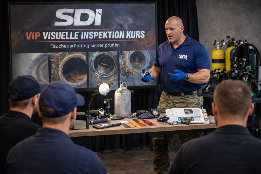 Der SDI VIP Kurs vermittelt die fachgerechte Durchführung der visuellen Inspektion von Hochdruck-Tauchflaschen gemäß geltenden Standards und Branchenrichtlinien.